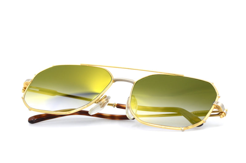 Gerald Genta Gold and Gold 01 Vintage Sunglasses as seen on Mist in So High video. Rare Vintage Sunglasses. Gold Mirrored Sunglasses.