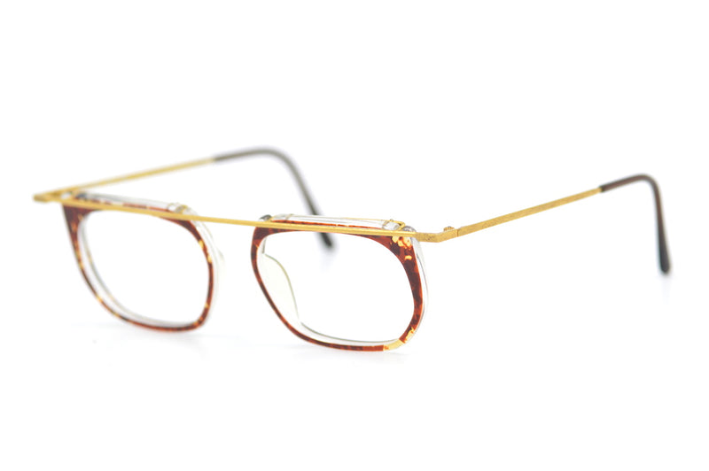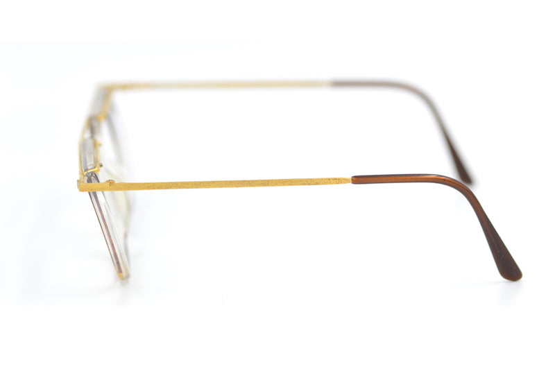 Manufactured in Italy we have SO298 retro vintage glasses. New unworn stock this cool frame takes inspiration from the Scandinavian nations. A gold metal brow bar supports the two acetate eye rims, and also adjoins to the temporal sides. A unisex frame, which could create a statement.