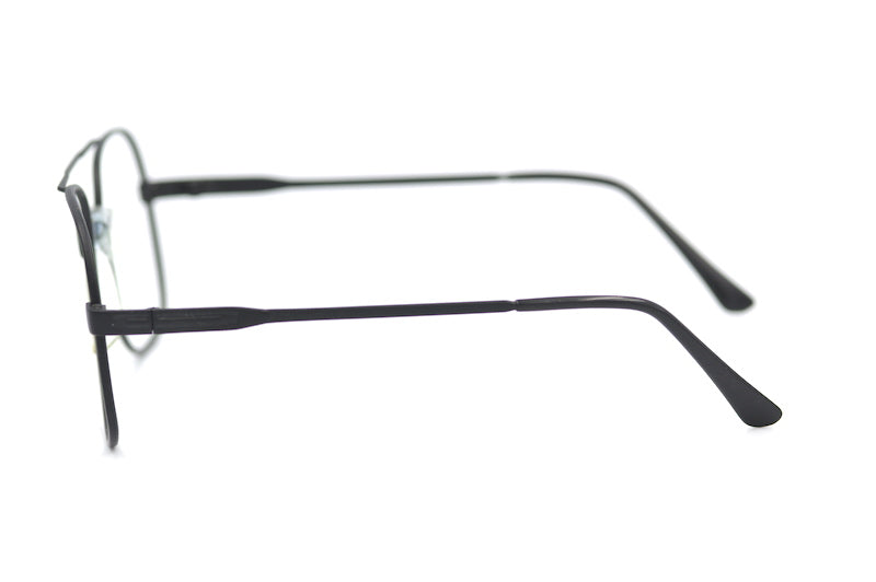 Matte black vintage aviator glasses. Manufactured in the 80s. New unused vintage glasses. This stylish frame features a comfort bridge and double brow bar for added strength and style. Simplistic yet stylish men's vintage glasses.