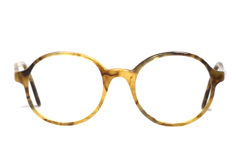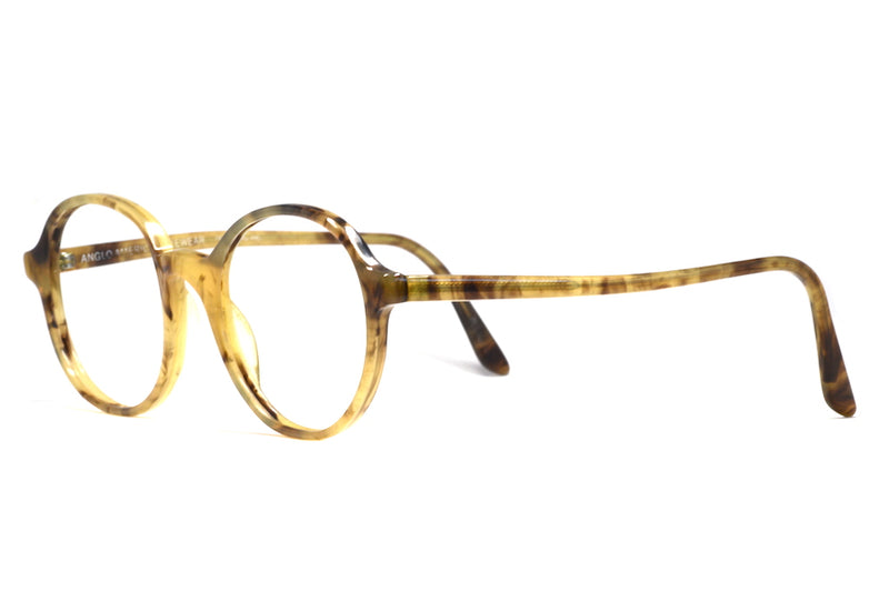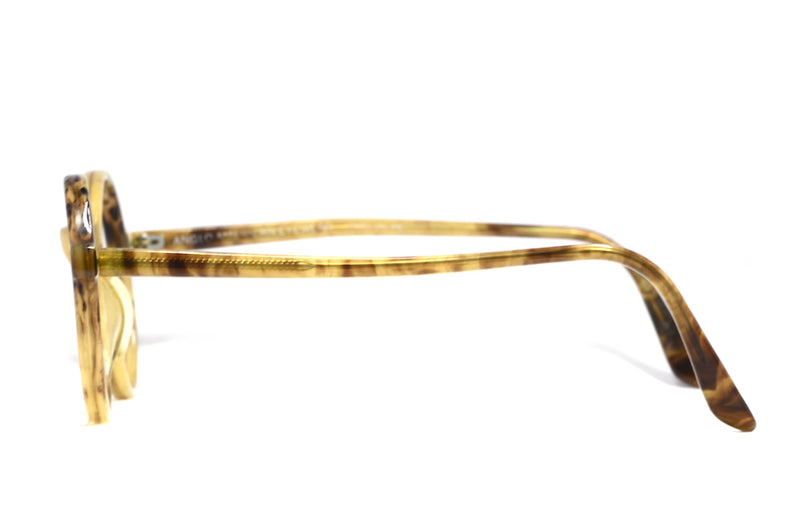 Manufactured in England we have this wonderful Anglo American Optical 240 in colour GYS. This light brown mottled acetate is round in shape and features a fixed pad bridge. This frame is stylish, simplicity at its best. Vintage Anglo American Eyewear frames continue to trend. This frame is in excellent vintage condition with little sign of wear.
