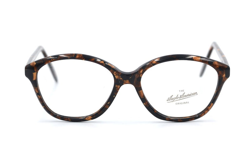 New old stock, Astor by Anglo American Eyewear. This super stylish frame is an easy to wear shape, with curved temples, softening the frame. The marbled acetate features flecks of black and brown. Manufactured using the highest quality acetate this orignal vintage frame is not to be missed, and is available in three colours.