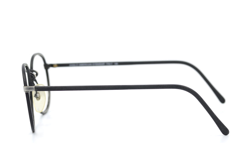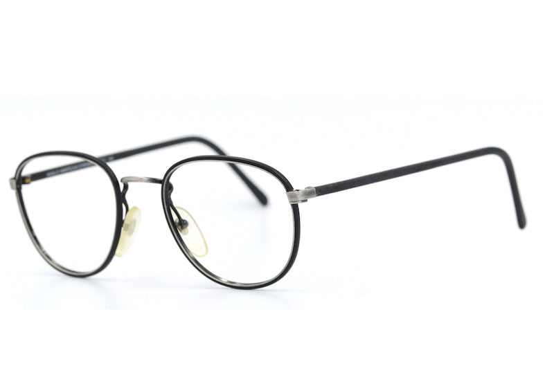 New old stock, Anglo American Eyewear M75 colour MABK. Manufactured in Italy, using the highest quality materials this original vintage frame is so on trend right now. Unisex the brushed gun metal rims feature matte black acetate rim covers and temporal sides. The way the metal is visible from the front really finishes this frame well. A subtle, stylish and sophisticated frame.