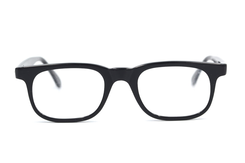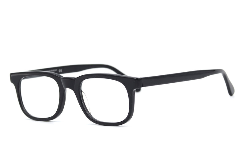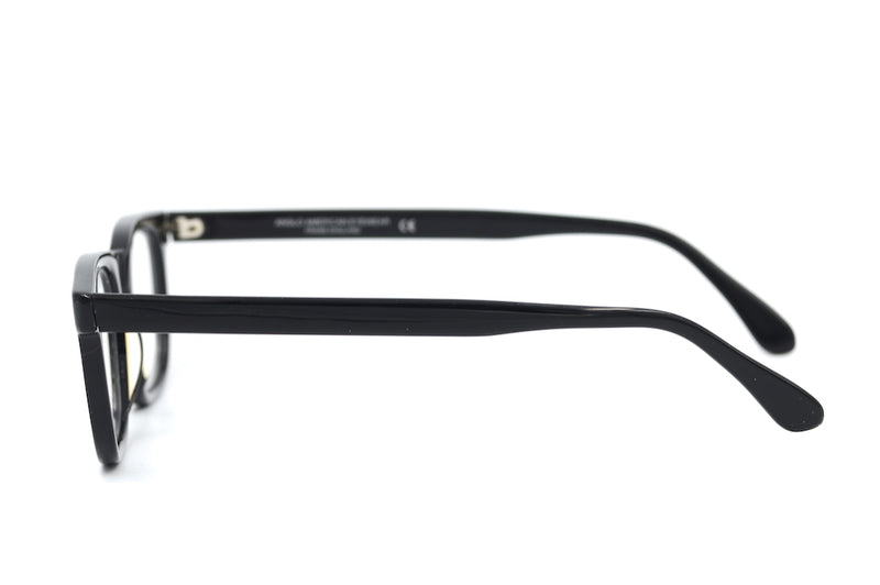 Anglo American Eyewear Tyler is a classic black acetate frame manufactured in England. A strong, durable and high quality frame designed to last. Unisex black rectangular glasses. Simplistic yet stylish vintage glasses.
