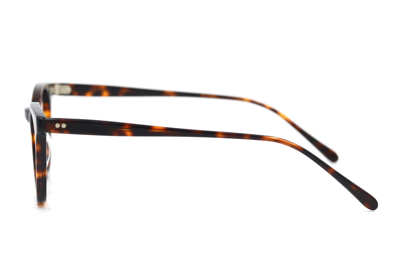 We love this vintage feminine acetate from Anglo American Eyewear. Manufactured in England, Yuba is made of fine brown mottled acetate and features traditional features such as silver pin head rivets, quality five charnier joints and a keyhole bridge. A very stylish and sophisticated frame which would work work well with most Customs. This could also be converted to make a cool pair of vintage sunglasses.