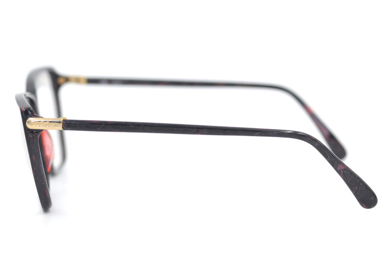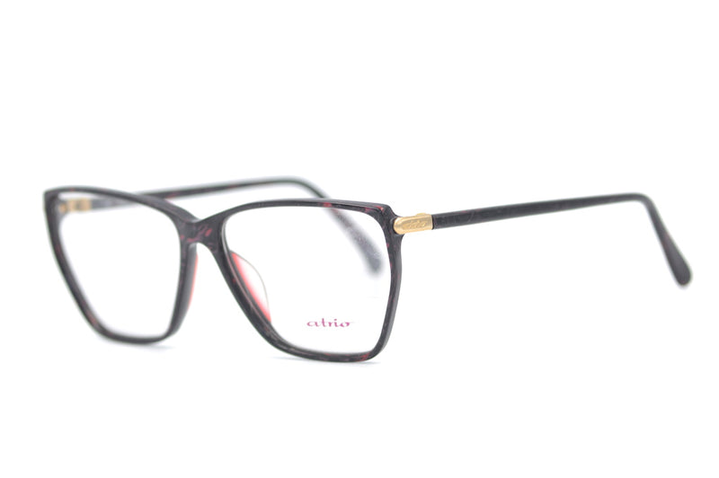 New old stock Atrio 284 in colour 964. This black pink mottled frame has a slight upsweep adding a feminine edge and gold metal detail to the temporal sides. Manufactured in Germany .