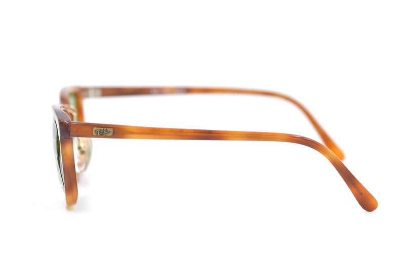 B&L RayBan Premier E W0868 vintage sunglasses from the RayBan Traditionals range. The frame dates back to the early 90s and is new old stock in superb condition. The frame comes with its original case and packaging. The acetate is a warm brown mottle and RB3 lenses have been fitted, made from glass and providing 100% UV protection. The lenses feature both the RayBan and B&L engravings. Rivet detail can be seen to the front temporal edges and the RayBan signature to the temporal sides. A stunning frame not to be missed.