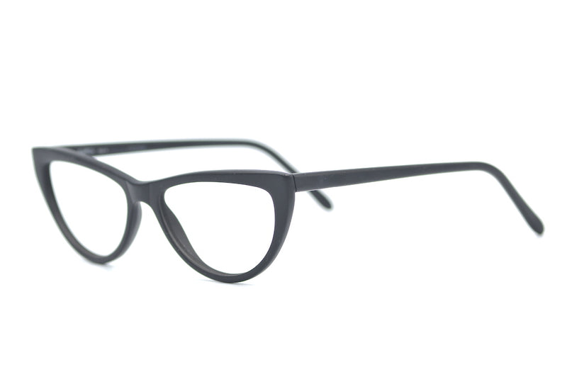 Bengal is a new old stock vintage frame from the 80s. The fame is made of black acetate and has a matte finish. Reminiscent of the cat eyes that graced the 50s, this is a timeless chic classic.