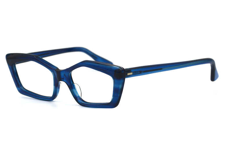 Manufactured in Britain we have this fabulous mid century vintage glasses frame. Made of blue mottled acetate, it is the striking shape that emphasises this fabulous, stylish frame. The frame is in excellent vintage condition and shows little sign of wear. Prescription lenses available from only £29.00.