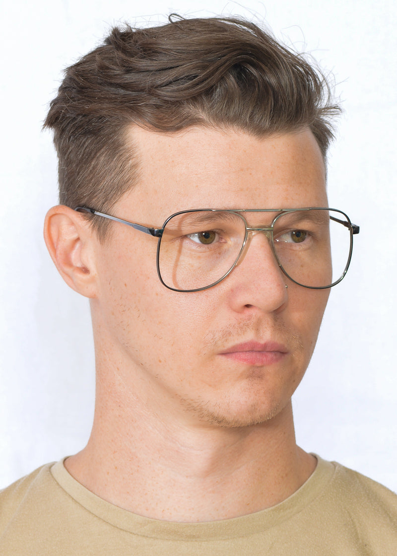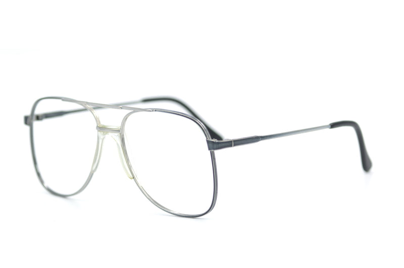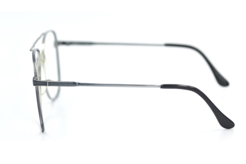 Böher 179 is an 80s oversized vintage aviator manufactured in Germany. Fitted with a comfort bridge, the weight is distributed evenly across the bridge, enhancing comfort. The metal frame has a gun metal to silver fade, which is present on the front and temporal sides, with intentional ageing. New unworn stock.