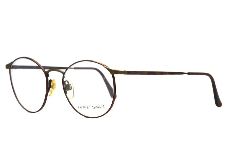**Brand New** Giorgio Armani model 163 in colour 967. This wonderful round frame which is currently on trend features brown tortoiseshell metal rims and sides with a bronze nose bridge and temple corners. Either side features "Giorgio Armani" in silver. This classic well designed, high quality frame was manufactured in Italy. Armani continues to be a leader in Italian Fashion and was founded in Milan,1975.