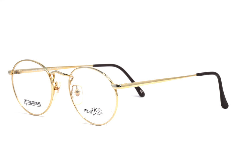 Brand new, unused Miami Hit USA 545 by International Eyewear. This fabulous vintage glasses frame takes inspiration from the 1940's. Simple yet effective polished gold coloured metal. The frame features a high set bridge which has toggle pads. With round eyewear a huge trend this season, this frame is perfect for the summer fashionista.