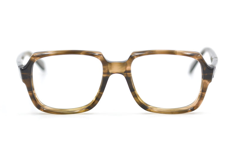 Burford by London Line 1960's vintage glasses. This unisex frame is square in shape and has been hand crafted out of brown smoke acetate. The lens rim's are quite thick, so this works well with most prescriptions. Made in England. Super stylish vintage glasses in great condition.
