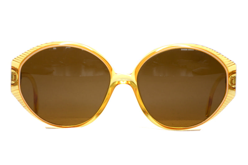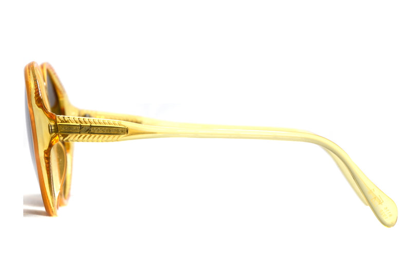 Carl Zeiss 8116 in colour 1928. This vintage sunglasses frame was manufactured in West Germany. A high quality pair of sunglasses from a company which is still a leader in optics to the present day. The yellow acetate frame features a white trim around the rim. The transparent temples house the Zeiss logo on the temple reinforcement. The frame is fitted with original glass lenses, which have a brown tint with offers 90% absorption and has full UV protection - category 3 tinted lenses. The lenses are in excellent condition, with very few minor marks, this is due to the lenses being made of glass. A stunning pair of vintage sunglasses.