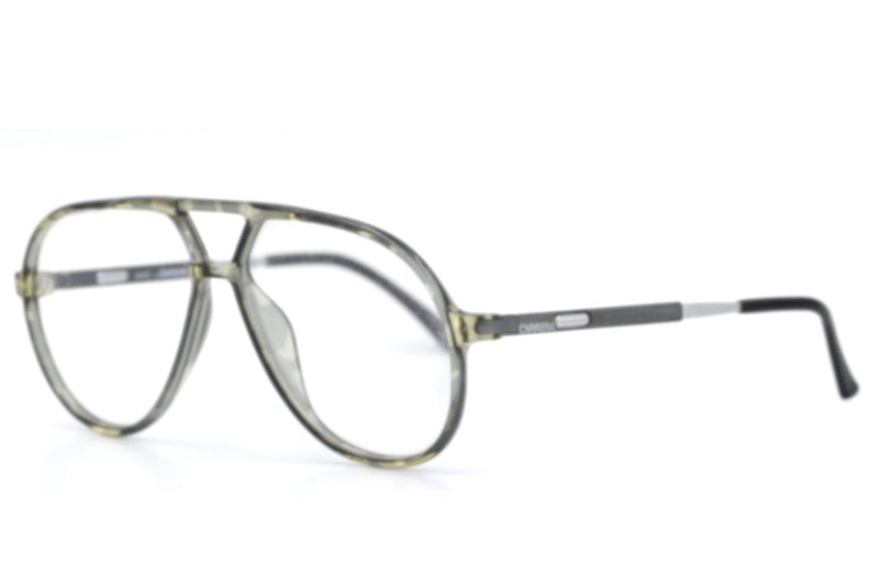 Manufactured in Austria we have Carrera 5335 20 Vario vintage glasses frame. This frame is in excellent condition with very little sign of wear. What is special about this frame is the Vario system which is used in the temple sides. This system allows the wearer to adjust the temple length between 125mm's and 140mm's, customising the length of the temple sides. The front of the frame has a grey camouflage effect and is made of Optyl a lightweight, durable and hypoallergenic material. A double bridge bar adds strength and style to the frame. The temporal sides are metal a combination of black with grey dot detail and brushed steel . The Carrera logo is visible on both temple sides. The frame would look fabulous as spectacles or sunglasses.
