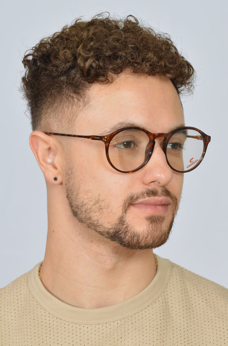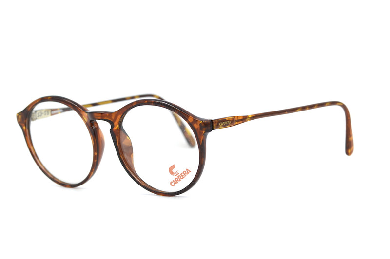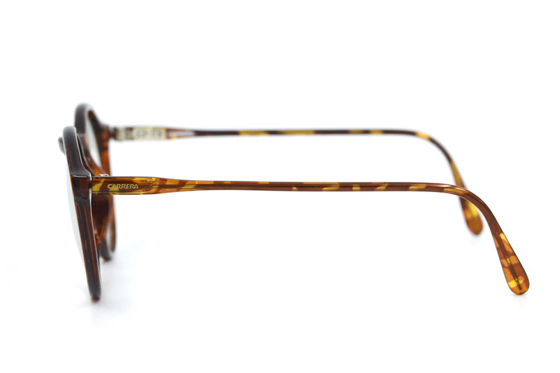 Carrera 5342 vintage glasses in colour 11. These new old stock vintage glasses are in fabulous condition. The frame was manufactured in Austria in the 1980's. It is made of Optyl, a lightweight, hypoallergenic and durable material. The round shape is currently on trend, and these stylish glasses are considered unisex. The temporal sides feature the Carrera signature in gold. The frame features a keyhole bridge and the brown mottled finish is a classic colour.