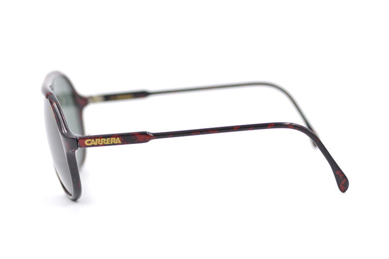 Carrera 5429A 31 vintage sunglasses. Manufactured in Austria in the 80s. A very stylish design from Carrera. Made of Optyl, a lightweight durable frame. Brown mottled acetate with the Carrera Champion emblem on the bridge. Classic Carrera styling with logos and signature. Get that formula one look. G15 graduated Carrera Ultrasight lenses provide 100% UV protection.