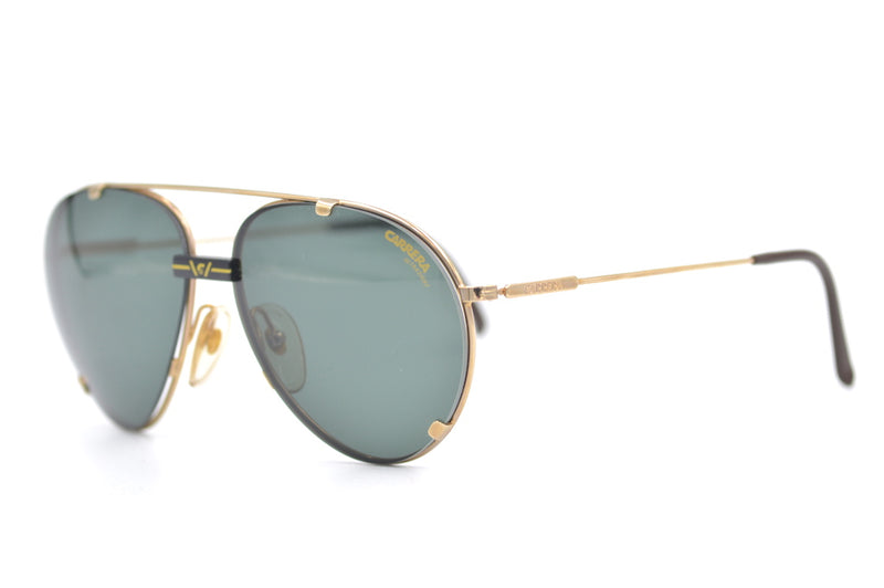 New old stock Carrera 5463 rare vintage sunglasses in colour 40. This gold metal aviator is incredibly cool, with the Carrera branding to the bridge, left lens and temporal sides. The Carrera Ultrasight lenses provide 100% UV protection. These are one of the coolest aviator frames around. Perfect for that Top Gun Maverick look.