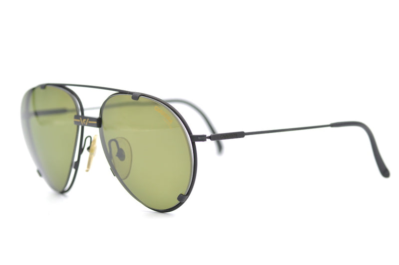 New old stock Carrera 5463 rare vintage sunglasses in colour 90. This matte back metal aviator is incredibly cool, with the Carrera branding to the bridge, left lens and temporal sides. These frames were from the Ultimate Driver Panaemericana range by Carrera. The Carrera Ultrapol lenses are polarised to eliminate glare and also lenses provide 100% UV protection. A minute scratch can be seen to the bottom left lens where the bracket holds the lens in place, Only visible on close inspection, as you can see from the pictures.
