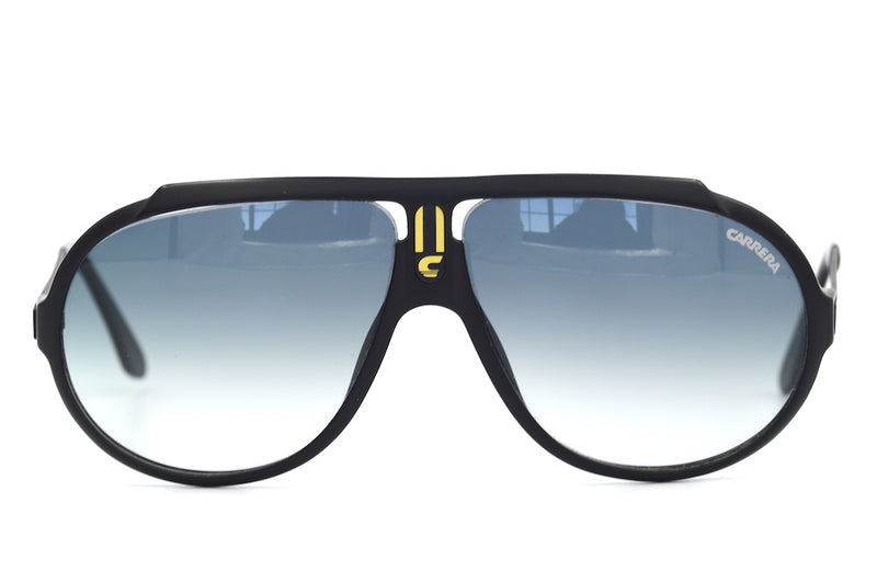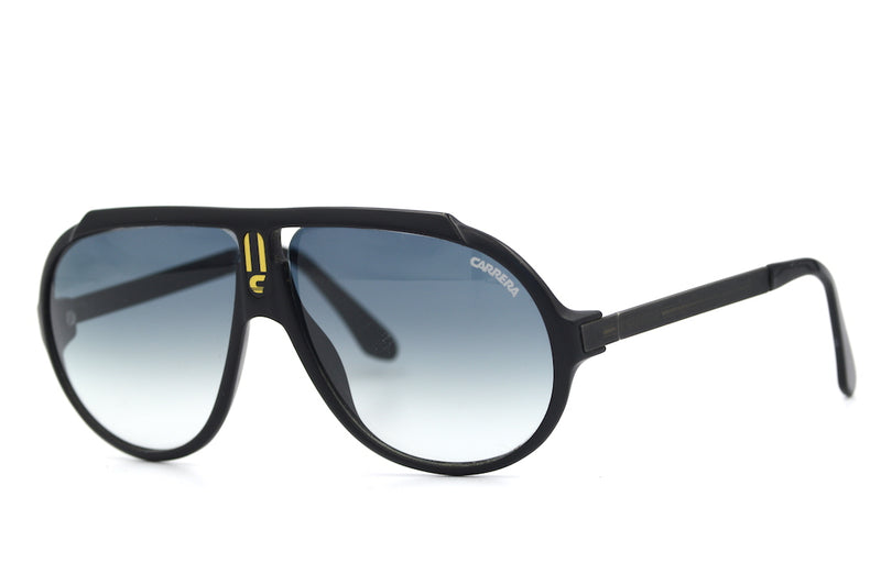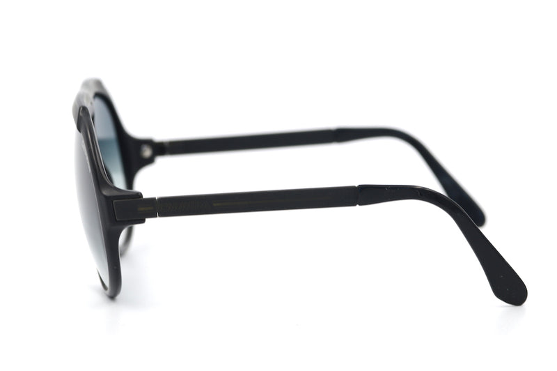 Carrera 5512 vintage sunglasses in colour 90. As seen on Don Johnson in Miami Vice. Super cool 80s sunglasses. This black oversized aviator is super stylish and features the Carrera branding to the bridge, left lens and temporal sides. Manufactured in Austria, this high quality frame is lightweight and durable. The lenses have a grey graduated tint and offer 100% UV protection. This frame is in great condition, with sign of light wear, the lenses have some scratches present, but they do not affect the vision or wearability of this frame.