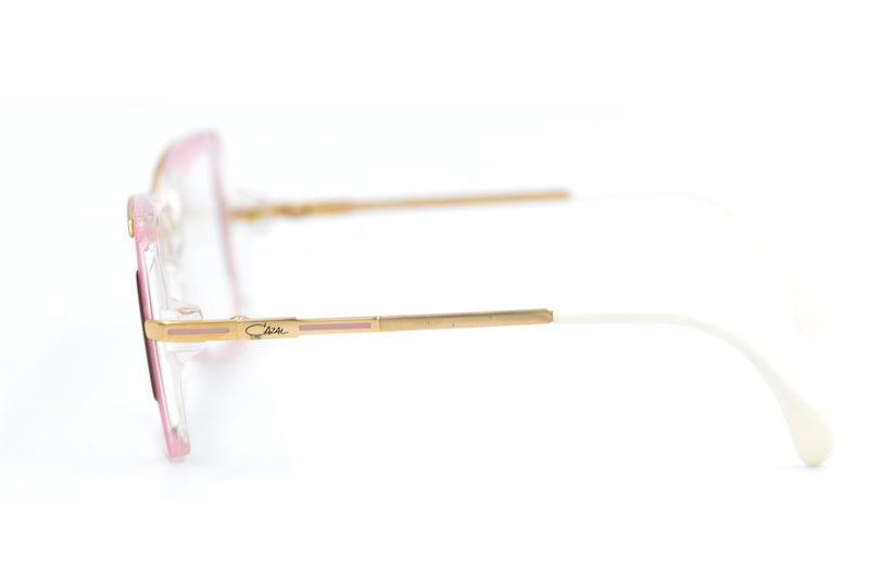 Manufactured in West Germany we have this new old stock Cazal 177 vintage glasses frame in colour 242. This stylish frame features a mix of pink, crystal and blue acetate. Super cool retro glasses. 80s Cazal vintage glasses.The Cazal signature is present on the right temporal side but has come off a bit on the left side. See side image. Custom lenses available from only £29.00.