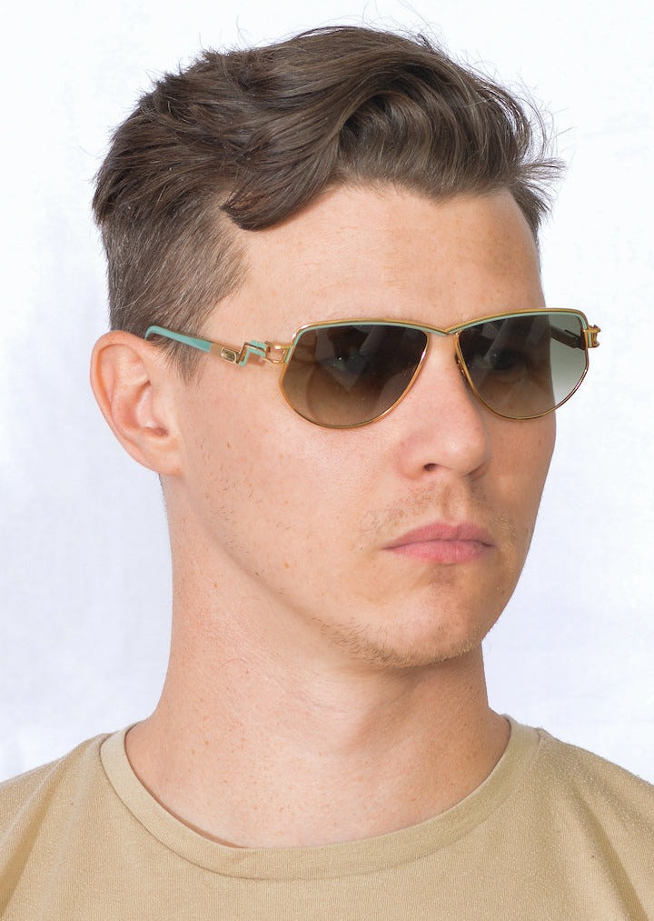 Cazal 231 in colour 97 is an incredibly cool design from the late 80s. Manufactured in West Germany, this vintage sunglasses frame is a classic Cazal shape. The Cazal signature is present to the temporal sides. G15 graduated lenses provide 100% UV protection. The lenses are new and do not feature the Cazal signature. The brand is synonymous with Hip Hop culture and has been seen on many celebrities including Run DMC, Spike Lee, Kanye West and Al Pacino.