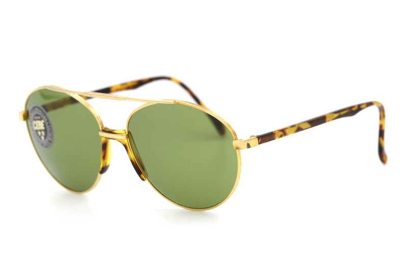 New old stock Cebe 563 vintage sunglasses with original case and labels. A fabulous rounded aviator the frames features brown mottled acetate to the temporal sides and fixed bridge. The lens rims are gold and have a gold brow bar adding extra support and strength to the frame. The right temporal features the Cebe signature. The lenses feature a G15 tint which absorbs approximately 85% of light. The lenses are of optical quality, offering 100% UV protection, scratch resistant and shock absorbing qualities. The lenses are in excellent condition as is the frame, however the left temporal corner is silver, not gold as a result of trying to clean a blemish. This is reflected in the price but in no way detracts from this stunning frame.