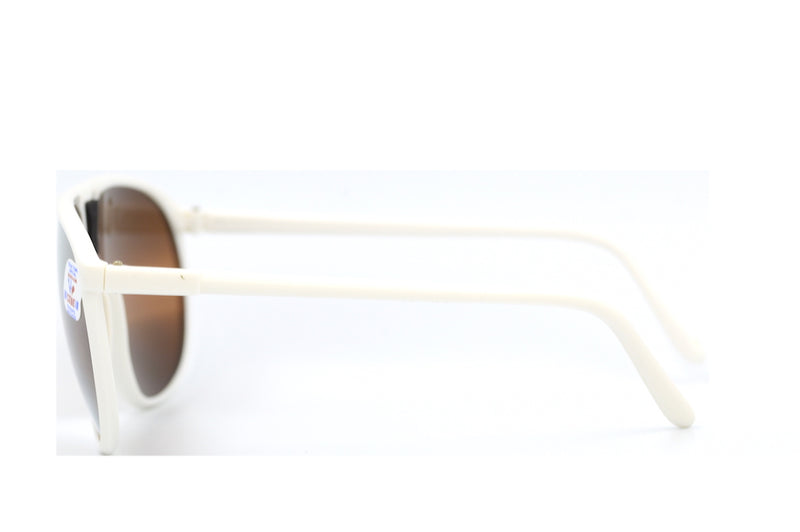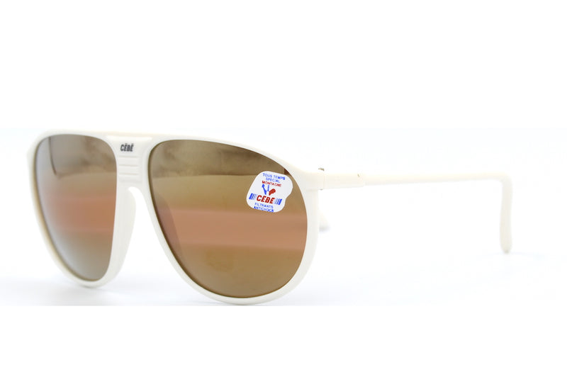 New old stock Cébé vintage sunglasses. This cream acetate mountain edition features a bronze mirrored lenses with 100% UV protection and reduced glare due to the striped lens. This frame is lightweight, comfortable and durable. Sporty vintage sunglasses, perfect for hitting the slopes.