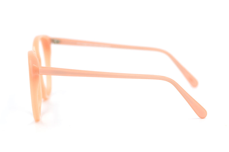 Chelsea 112 by Michael Selcott. Original new old stock from the 80s. This oversized peach acetate frame is a classic design, similar to the Zoe model.