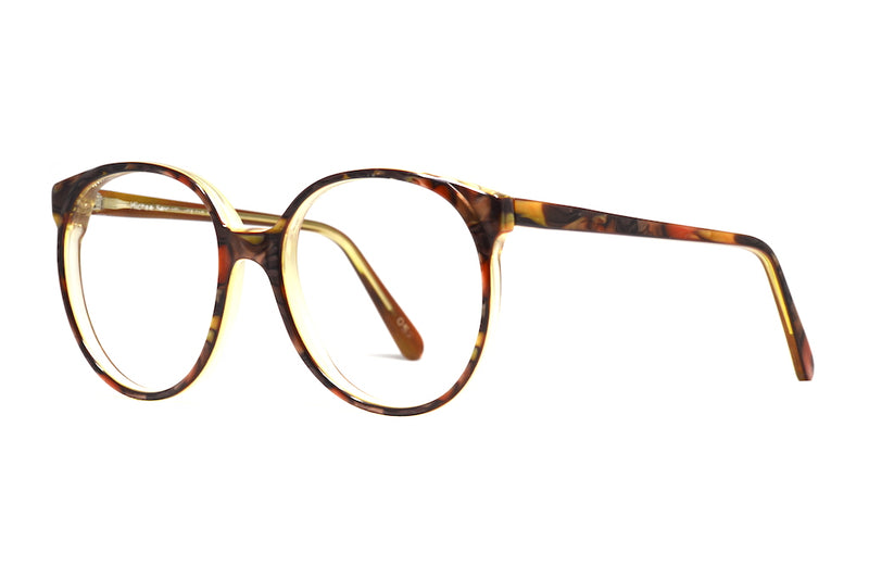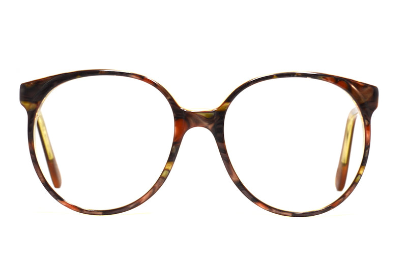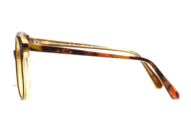 Manufactured in England we bring you Chelsea by Michael Selcott. This oversized acetate frame has a marbled effect and is full of autumnal colours, with browns, hints of red and gold. In excellent vintage condition, this frame continues to be one of our best sellers.