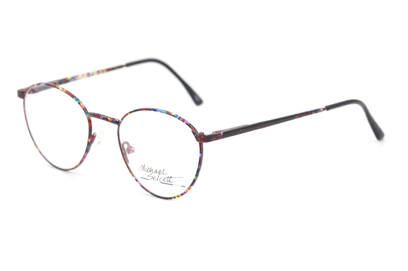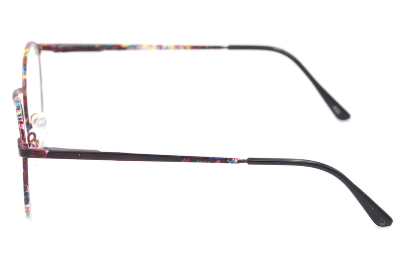 On trend we bring you this new old stock Micheal Selcott Chelsea Set Colourama. This fine, round metal frame is predominantly red in colour but features an almost paint splatter of colour in places. The frame features a toggle pad bridge, which can be adjusted for comfort. A fabulous frame from the 1980's.