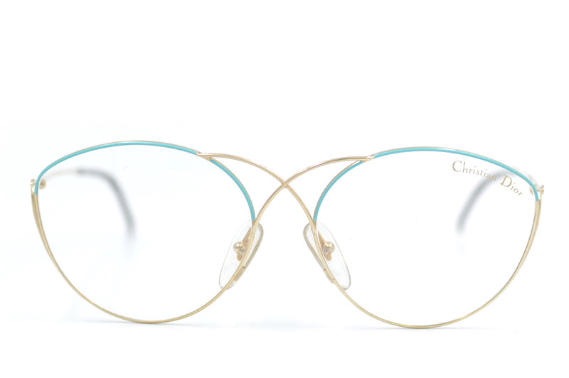 New unworn Christian Dior 2313 vintage glasses in colour 45. This gold polished metal frame features turquoise brows and wonderful gold detail to the bridge.A feminine frame, lightweight design, manufactured in Austria. The temporal sides feature the Christian Dior emblem. Stylish, sophisticated, sustainable.