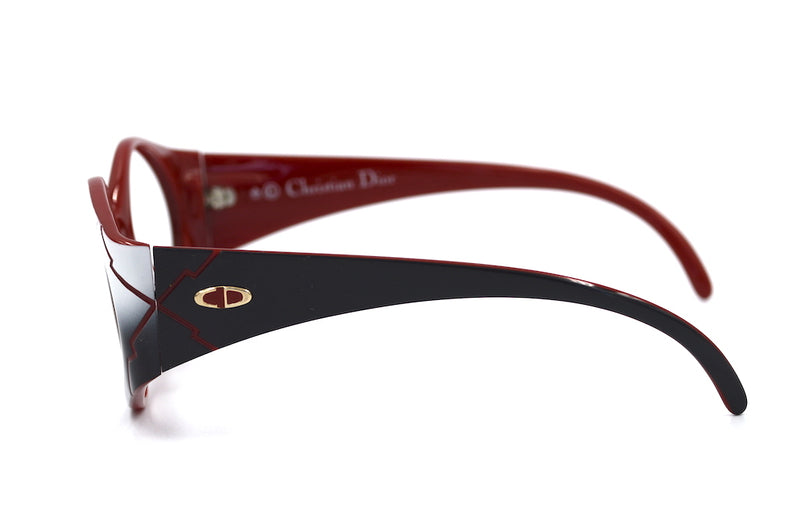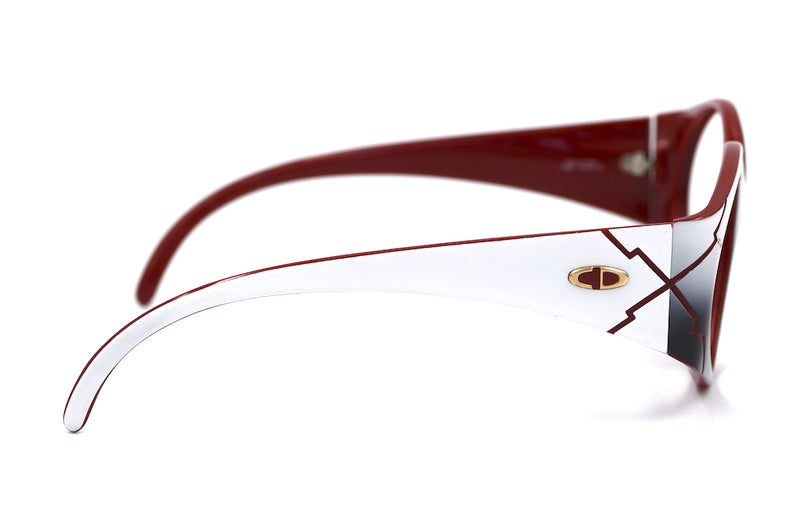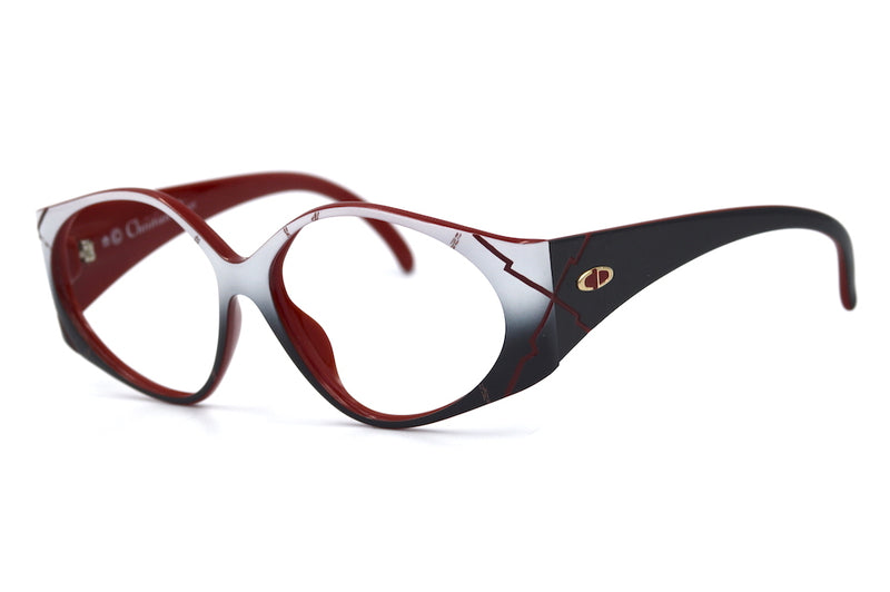Manufactured in Germany we have this new old stock Christian Dior 2348 in colour 70. This oversized acetate frame is a combination of red, charcoal and white. The temporal sides are different colours and both feature the Christian Dior emblem. The frame is made of Optyl, a lightweight, durable and hypoallergenic material. This frame would look super cool converted tp Custom sunglasses. Please note due to the oversized nature of this frame, lens prices may vary.