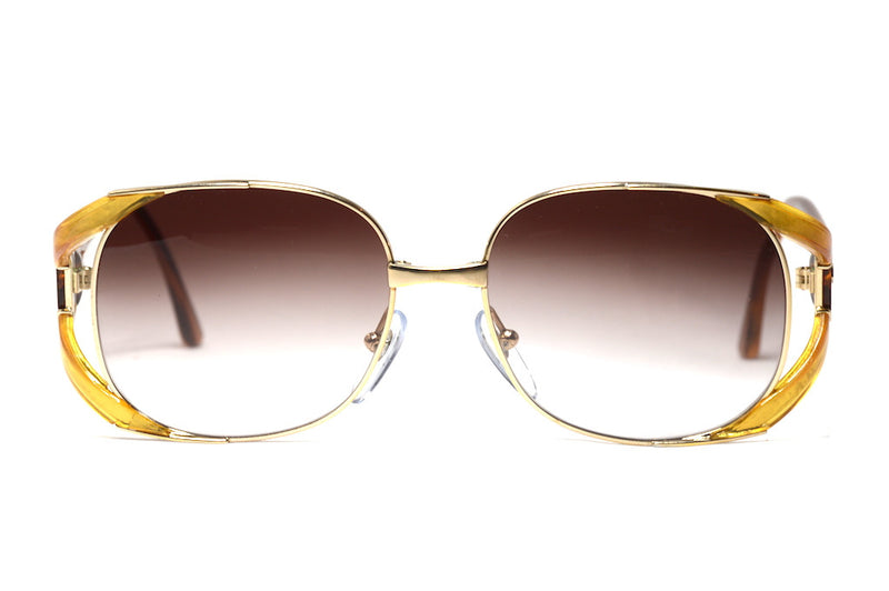 Here we have customised the 1980’s Christian Dior vintage 2524 glasses in colour 42, and converted them into a stunning pair of bespoke vintage sunglasses. This frame is ready to wear, the lenses have full UV protection and feature a subtle brown graduated tint. This frame demonstrates fabulous vintage styling from Dior. The gold metal front extends to the sides with two acetate coated bars adding a real stylish twist. The amber acetate sides feature the initials CD. The inside right side is stamped with Christian Dior. The sides are made of Optyl which is extremely light weight. New nose pads have been fitted to this frame. The frame features the stamp “Frame made in Germany”.The frames show light surface scratches on the front of the of bridge which is barely noticeable, this is a minor flaw and the frame is still considered to be in excellent condition.