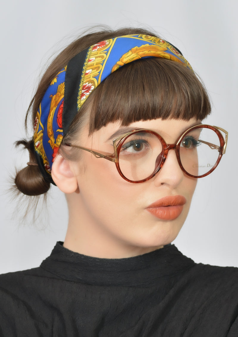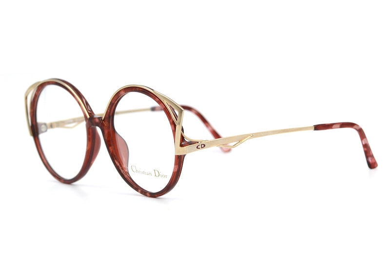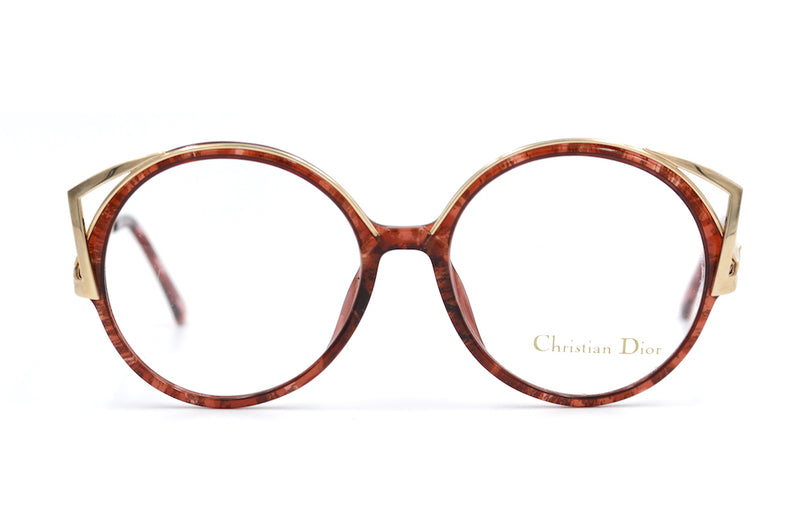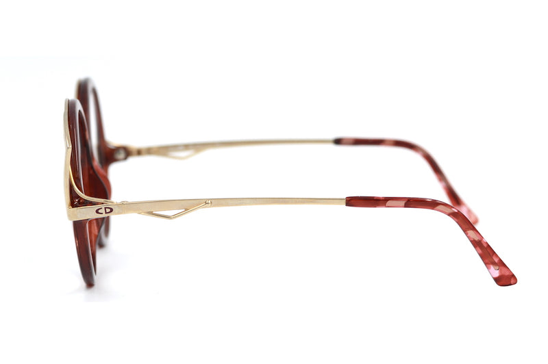 New old stock Christian Dior 2554 vintage glasses in colour 30. This incredible oversized round, rare frame has a feline edge to it, with the gold metal brow detail. Manufactured in Germany this fun and funky frame is made of brown mottled Optyl . The frame is lightweight, durable and hypoallergenic. The temporal sides feature the Christian Dior emblem.