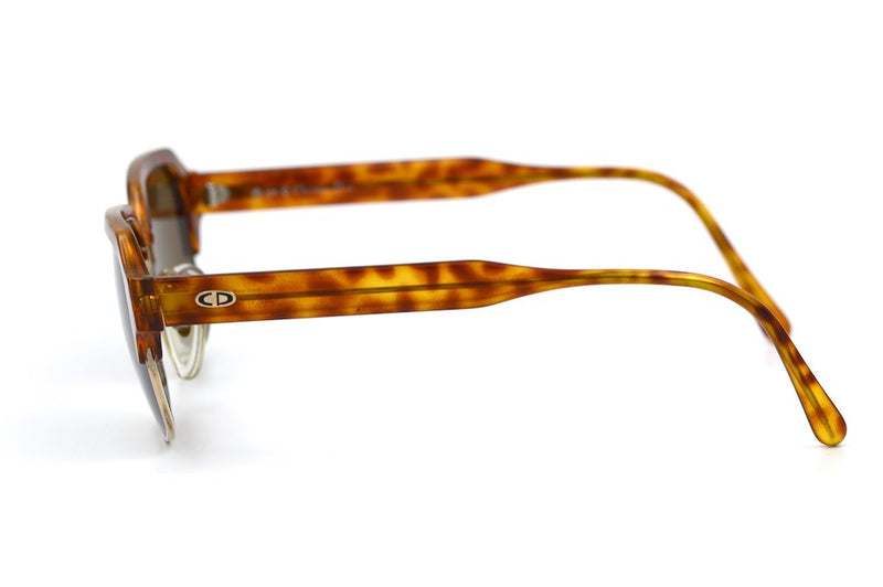 New old stock Christian Dior 2587 vintage sunglasses in colour 41. The frame feature gold metal rims and bridge with demi brown matte mottled acetate brows and temporal sides. A very stylish pair of Christian Dior sunglasses in excellent condition. The lenses are brown, absorb approximately 80% of light and have Vision 400 lenses which have 100% UVA & UVB protection. Manufactured in Germany, the temporal sides feature the Christian Dior emblem. This frame is suitable for Custom lenses. Smaller size available.