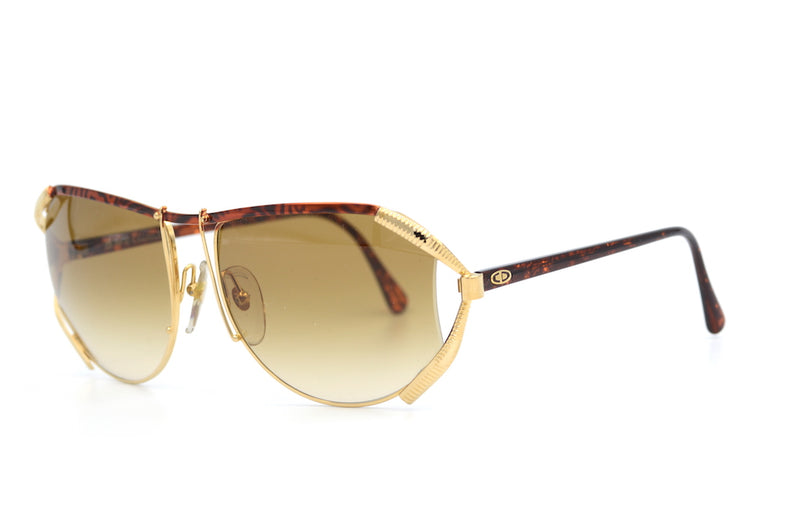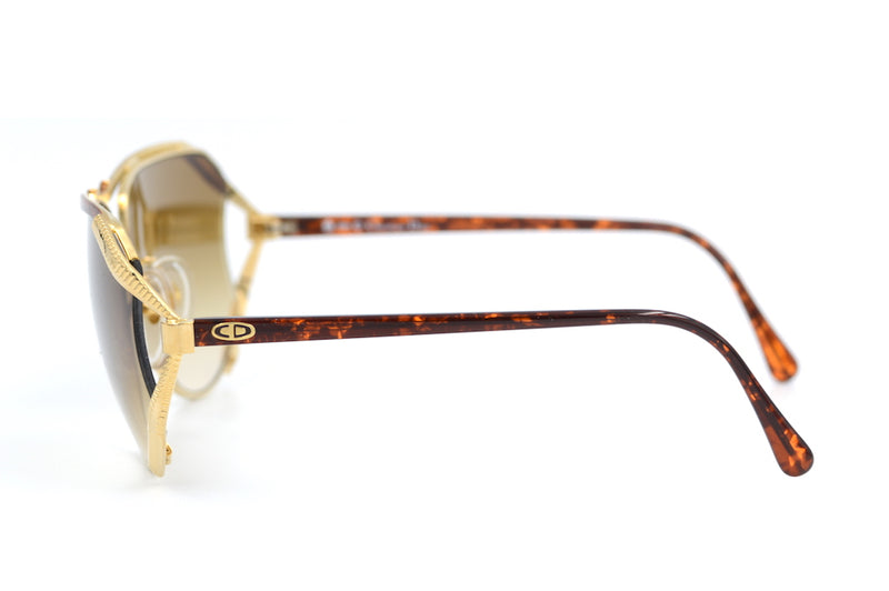 New old stock Christian Dior 2609 vintage sunglasses in colour 41. This stylish sustainable sunglasses frame is right on trend, a real 80's oversized style with the wrap round mid set temporal side. The Christian Dior emblem is present either side. The lenses have a brown graduated tint and have 100% UV protection.