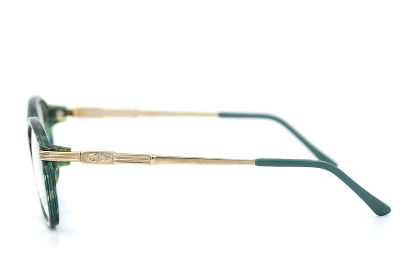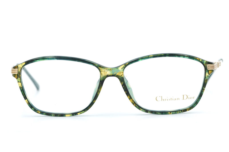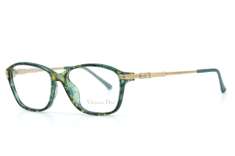 New old stock Christian Dior 2642 vintage glasses in colour 30 . This vintage ladies glasses frame is made of polished gold metal sides and a green and gold mottled front. The front is made of Optyl, a lightweight, durable and hypoallergenic material. The colour and finish on this frame makes it easy to wear. The frame was manufactured in Germany in the 80's and the temporal sides feature the Christian Dior emblem. This frame is also available in a smaller size on request.