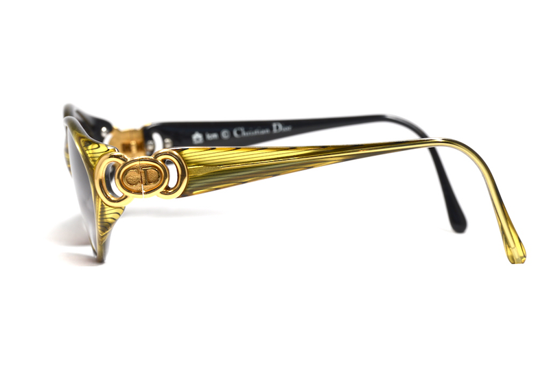 Christian Dior 2851 vintage sunglasses. This frame has been fitted with new brown lenses which have UV400 protection and absorb 85% of light. The frame is made of Optyl which is a lightweight, durable and hypoallergenic material. The frame is gold in colour with black stripes which create a fabulous effect. The temple sides feature the Christian Dior emblem which has a 80's feel. The frame is in excellent vintage condition.