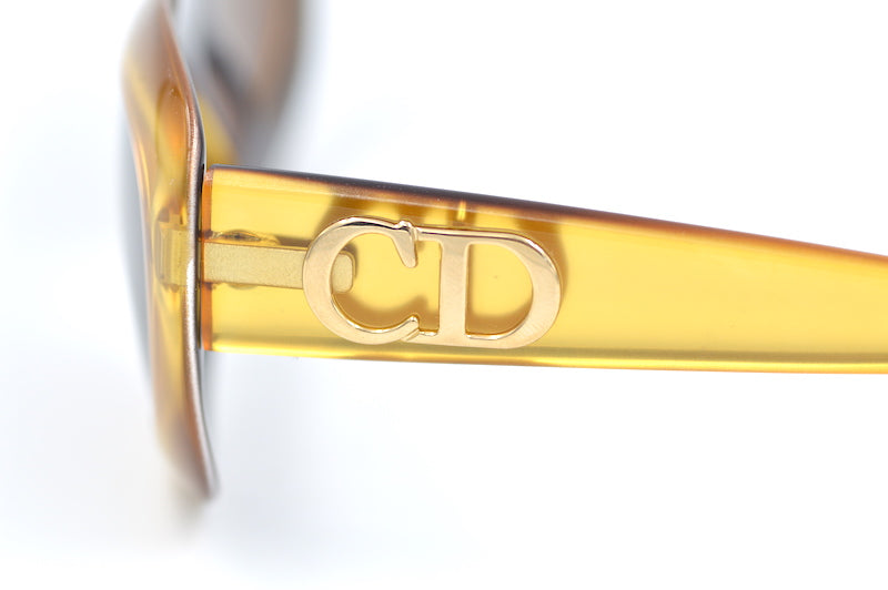 Original vintage Christian Dior 2974 ladies vintage sunglasses in colour 40. This stunning Dior gold cat eye sunglasses frame is fitted with brown lenses that provide 100% UV protection. Manufactured in Austria in the 80s, this high quality frame is made of Optyl, a lightweight, durable and hypoallergenic material. Super stylish, with the bold Christian Dior emblem in gold featured on the temporal sides.