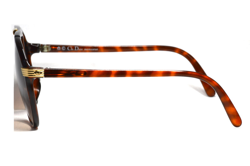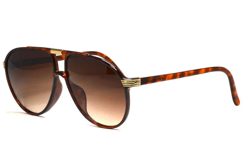 Christian Dior Monsieur 2300A is a stunning mens aviator. Manufactured in Germany this high quality vintage sunglasses frame is made of Optyl, making it lightweight, durable and hypoallergenic. The frame features a double bridge with gold detailing and gold ribbed detailing to the front of the temples featuring the CD emblem. The frame is fitted with brown graduated lenses which change from 85% absorption at the top to 15% absorption at the bottom of the lens, they also have UV protection. Beautifully styled for the discerning gent.