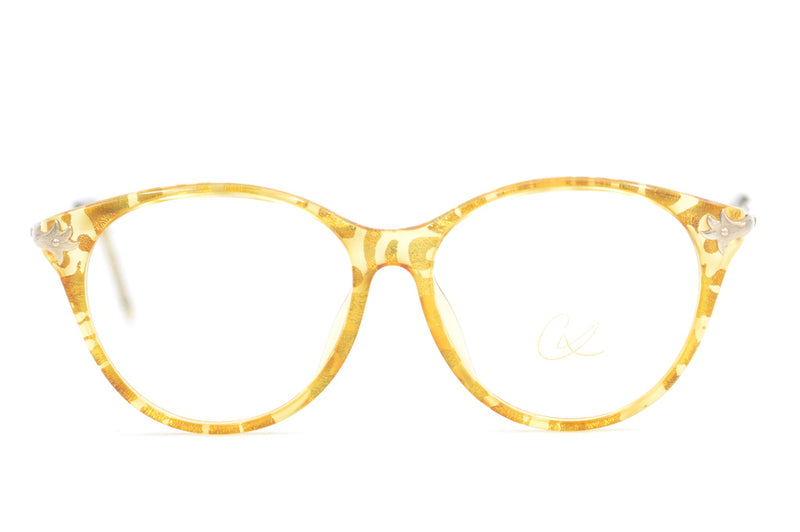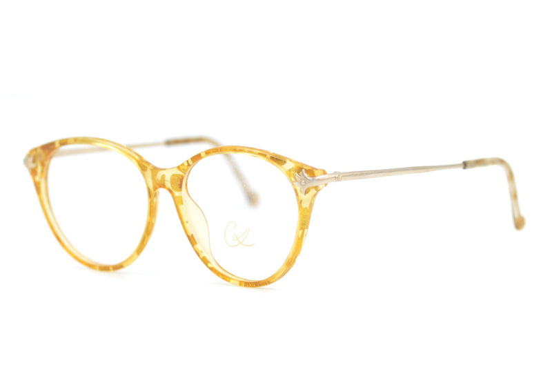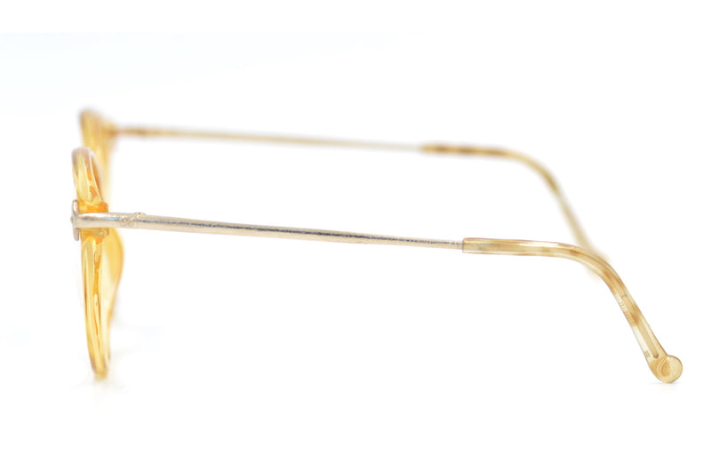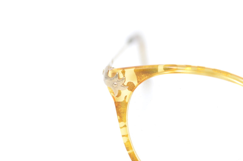 Christian Lacroix Golden new old stock vintage glasses. Manufactured in the 80s, this combination frame features a golden Optyl front with gold foil within and polished metal sides. The frame is lightweight and comfortable. Manufactured in Austria. The brand is known for combining luxury and insouciance. A rare vintage frame not to be missed.