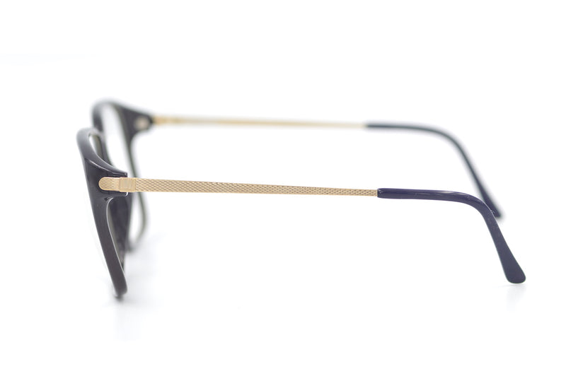 New old stock Dunhill 6117 50 vintage glasses. Manufactured in Germany this simplistic yet stylish frame is typical of the British luxury brand. Alfred Dunhill's classic and timeless frames are a firm favourite at Retro Spectacle. 1980's eyewear not to be missed. This square combination frame features a deep navy Optyl front which is lightweight, hypoallergenic & durable, whilst the temporal sides are gold metal, with the classic Dunhill detail. material. The Dunhill branding is present with the signature diamond checkerboard plating. 80s Hip Hop oversized glasses.