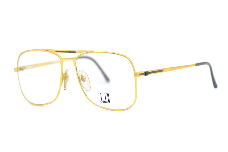 New old stock Dunhill 6038 in colour 42. This stunning frame is incredibly rare and is made out of titanium. The frame is gold plated and was manufactured in Japan in the 80s. Classic Dunhill branding can be seen to the upper bridge and temporal sides. This frame is unworn, however on very close inspection there is a little bit of tarnishing (see pictures), but don't let that detract from this magnificent frame. Dunhill glasses frames reflect the essence of the British luxury brand which continues to supply exclusive menswear and accessories to the discerning gentleman.