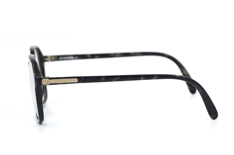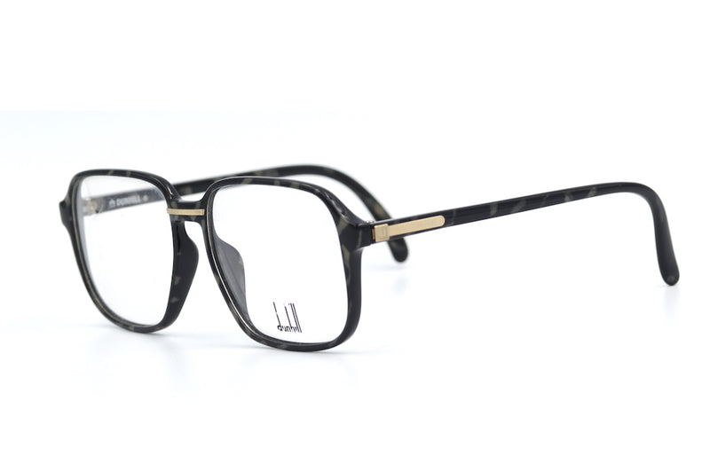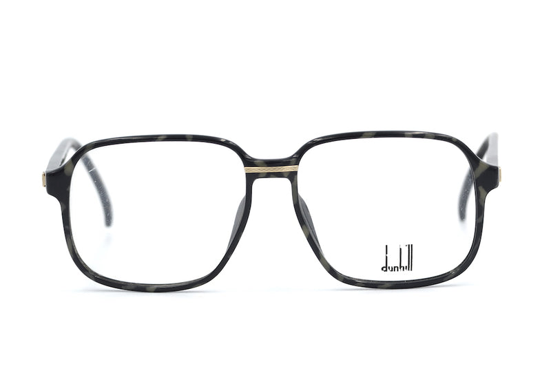Dunhill 6060A vintage glasses in colour 20. Made of Optyl, this high quality frame is lightweight, durable and hypoallergenic. We love the grey black mottled effect which features throughout the frame. The Dunhill emblem can be seen to the temporal edge, with the signature Rolex strap metal work. Manufactured in Austria in the in 1987. 80's Vintage sunglasses. These high quality luxury vintage frames reflect the essence of the British luxury brand which supplies exclusive menswear and accessories for the discerning gentleman.