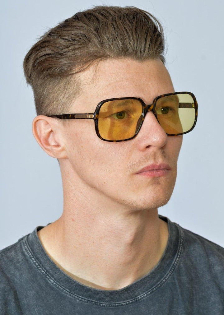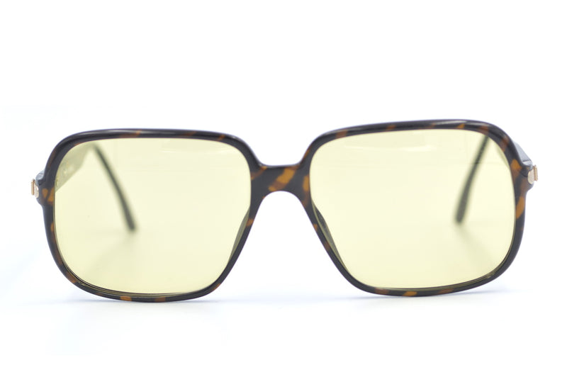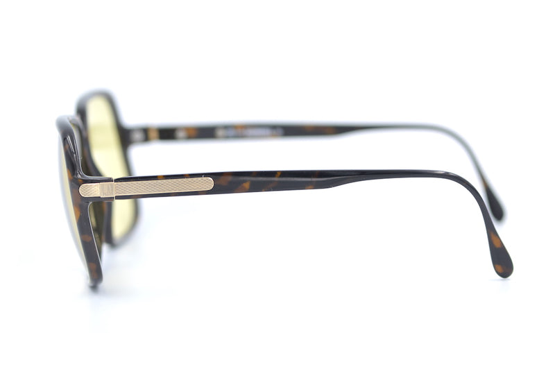 LAST ONE - Dunhill 6088 in colour 12. Fitted with yellow fashion tint lenses, the frame is reminiscent as those worn by Monique in the Netflix show The Serpent. Manufactured in Germany in the 1980's the frame is made of Optyl lightweight, durable and hypoallergenic material. The temporal sides feature the classic Dunhill checker plate detail alongside the Dunhill emblem. Incredibly stylish, sustainable glasses. These high quality vintage glasses reflect the essence of the British luxury brand which supplies exclusive menswear and accessories for the discerning gentleman. Please note the yellow lenses are a fashion tint and do not offer UV protection.