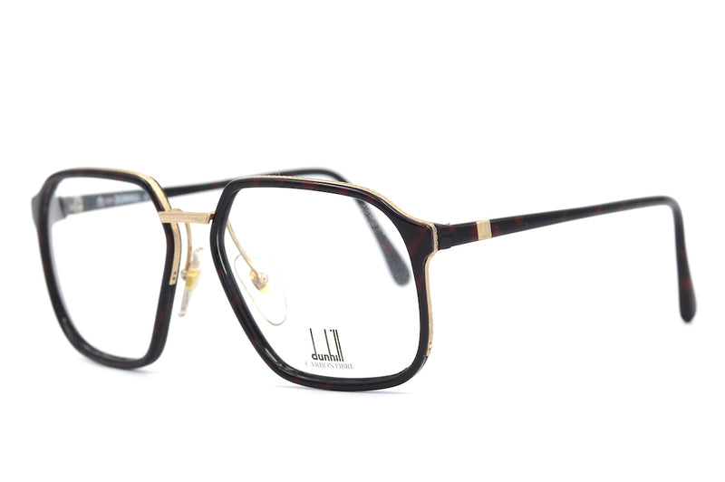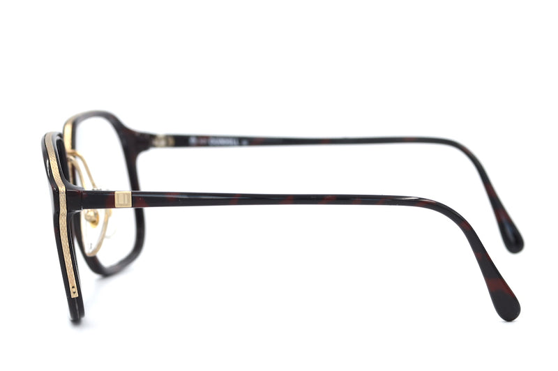 Dunhill 6092 vintage glasses in colour 30. Manufactured in Austria in the 1980's Dunhill 6092 features in our collection favourites. The front acetate rims are supported by a supra cord beneath, whilst the famous gold metal checker plate detail surrounds the bridge and upper rims. Stylish without being over the top, this is a real sophisticated frame. The overall frame is made of Optyl a lightweight, durable and hypoallergenic material, which is what makes this frame so comfortable. The temporal sides feature the gold Dunhill emblem. This frame is currently available in numerous colours and sizes. Incredibly stylish, sustainable glasses. These high quality vintage glasses reflect the essence of the British luxury brand which supplies exclusive menswear and accessories for the discerning gentleman.