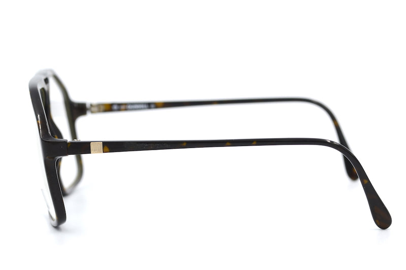 One left in colour 90. Dunhill 6097 vintage glasses in colour 12. This super stylish oversized aviator was manufactured in Austria in the 90s. New old stock, this frame is made from Optyl, a lightweight, hypoallergenic and durable material. The brown mottled pattern is subtle and gold Dunhill emblems are featured on the temporal sides. Want to look cool, look no further than these stunning Dunhill 6097 vintage glasses. These high quality vintage glasses reflect the essence of the British luxury brand which supplies exclusive menswear and accessories for the discerning gentleman.