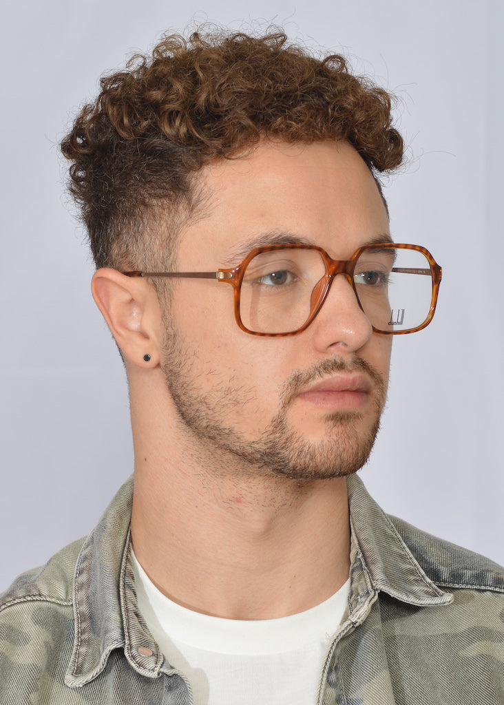 New old stock Dunhill 6108 in colour 11, warm amber. This original vintage frame shot to fame, when it was seen on Jay Z back in 2009. Manufactured in Germany in 1990 the frame comes with the original demo lenses. The front is made of Optyl, a lightweight, hypoallergenic material, the temple sides are gold metal, featuring the distinctive Dunhill emblem and diamond pattern. These stylish high quality vintage glasses reflect the essence of the British luxury brand which supply exclusive menswear and accessories for the discerning gentleman. Custom lenses available with this frame from £29.00.