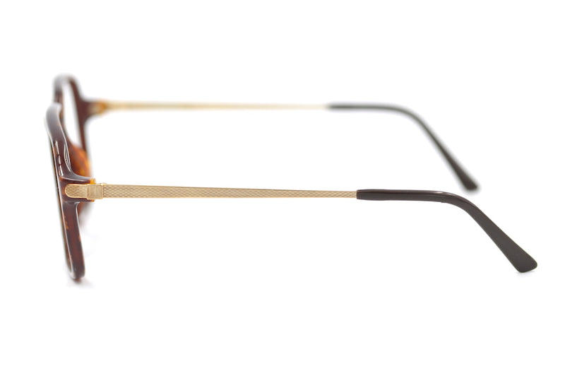 Dunhill 6135 vintage glasses in colour 14. This stylish men's frame features a brown mottled front with gold checker plate sides. Manufactured in Germany in the 80s. A lightweight comfortable design. Shop the best selection of Dunhill vintage glasses online at Retro Spectacle.