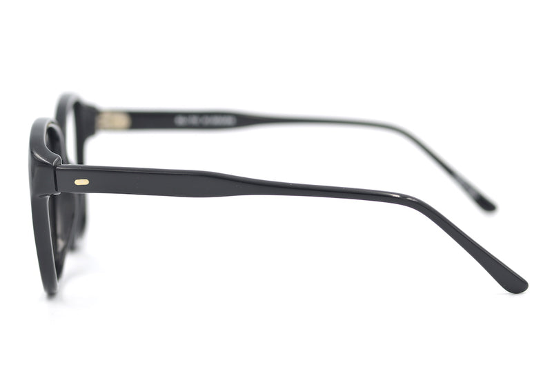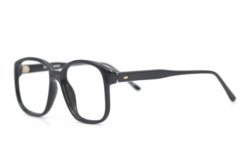 New old stock Elite Richard in Black. This stylish yet simplistic frame is made of black acetate, with high set temporal sides and a five charnier hinge. This 70's square vintage frame is strong and durable. Silver rivet detail can be spotted to the temporal side. This frame is also available in Demi Amber.